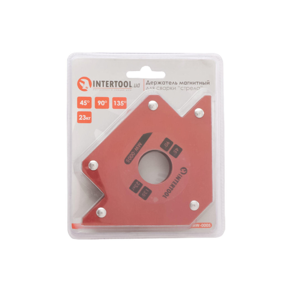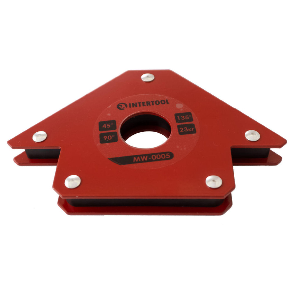 Магнітний тримач для зварювання застосовується для фіксації металевих деталей, які необхідно зварити разом. Дозволяє запрограмувати заготовку під необхідним кутом, що набагато спрощує роботу зварювальника. В результаті виходять максимально точні й акуратні зварні шви. Зусилля фіксації становить 23 кг. Розмір: 90 × 100 × 17 мм; Кути: 45 °, 90 °, 135 °; Максимальне зусилля: 23 кг