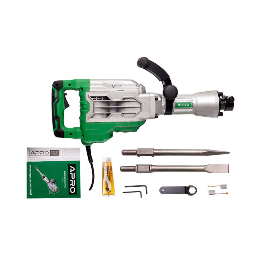 Відбійний молоток Apro DH2300 активно і широко використовується, залежно від насадки, у будівельній сфері для демонтажу та різного роду руйнувань твердих матеріалів, а саме: демонтаж керамічної та керамогранітної плитки, розколювання міцних матеріалів (цег: