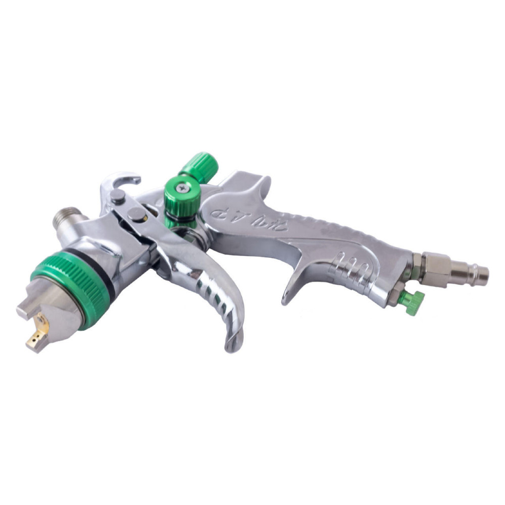 Технологія розпилення HVLP II пластиковий верхній бачок 600 см3 форсунка 1,3 мм робочий тиск 3,0 - 4,0 bar продуктивність компресора 180 - 260 л/хв діаметр круглого факела 30 - 50 мм ширина плоского факела 160 - 240 мм регулятор подачі ЛФМ регулятор форми факела регулятор подачі повітря перехідник 1/4 '' - швидкознімне з'єднання.
