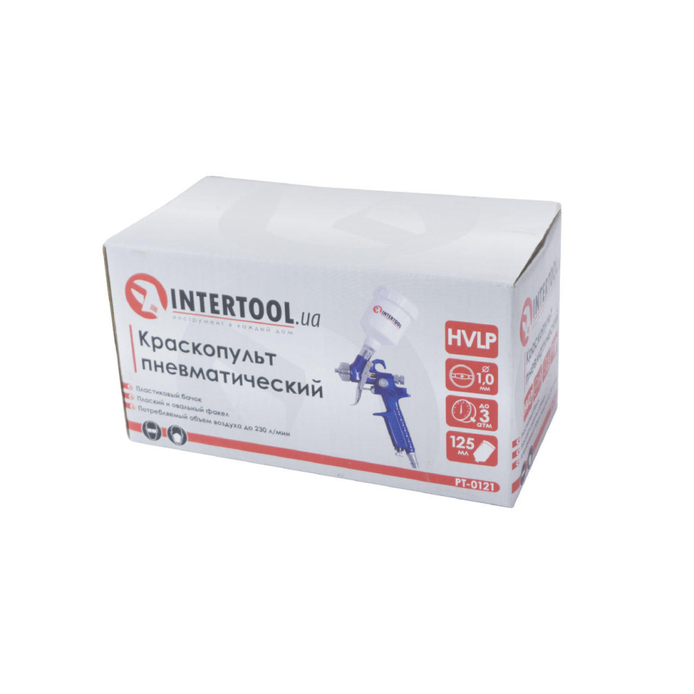 Краскопульт РТ-0122 використовується для фарбування невеликих поверхонь, тонування, аерографії, художнього лакування. Краскопульт створений за технологією HVLP (Низький тиск з великою витратою повітря), завдяки чому досягається 75% ефективність перенесення ЛФМ на поверхню і економно витрачаються дорогі матеріали. Даний краскопульт може використовуватися з більшістю видів ЛФМ. Розташування пластикового бачка, ємністю 125 мл - верхнє. При робочому тиску до 3 атмосфер витрата повітря не перевищує 230 л / хв. Форсунка діаметром 1,2 мм дає можливість розпилення матеріалу плоским овальним факелом. Особливості За рахунок високого коефіцієнта перенесення ЛФМ на поверхню значно знижуються втрати на туманообразование; Плоский і овальний факел; Підходить для більшості видів ЛФМ; компактний, ергономічний корпус дозволяє оптимально використовувати всі можливості інструменту і забезпечує максимальний комфорт роботи; Бачок зроблений з високоякісного пластику, що забезпечує довготривалість експлуатації інструменту і простоту в його обслуговуванні. Робочий тиск: до 3 атм; Діаметр форсунки: 1,2 мм; Витрата повітря: до 230 л / хв; Розташування бачка: верхнє; Обсяг бачка: 125 мл; Матеріал бачка: пластик; Діаметр шланга: 6-8 мм; Вхідний повітряний отвір: 1/4 " Матеріал бачка: пластик; Діаметр шланга: 6-8 мм; Вхідний повітряний отвір: 1/4 " Матеріал бачка: пластик; Діаметр шланга: 6-8 мм; Вхідний повітряний отвір: 1/4 "