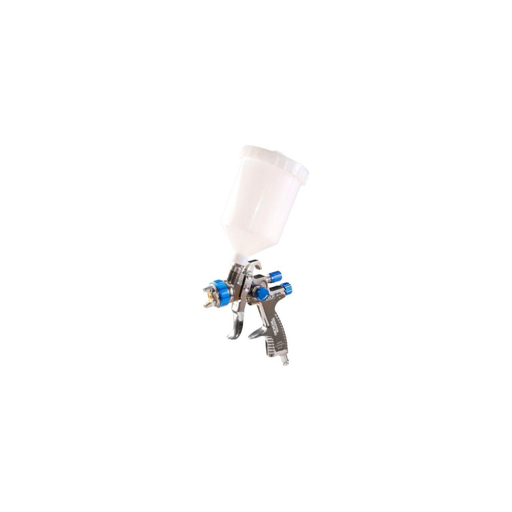 Пневмопістолет LVLP, пластиковий бачок. Застосовується для нанесення лакофарбових матеріалів, (таких як лак, оліфа, фарба, грунтовка, глянець, глазур, емаль) і клею на поверхні із пластику, металу, дерева, кераміки. Використовується в будівництві, меблевій