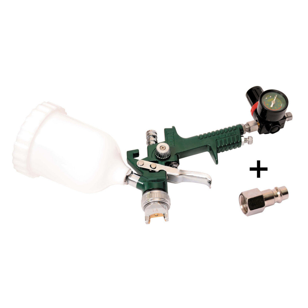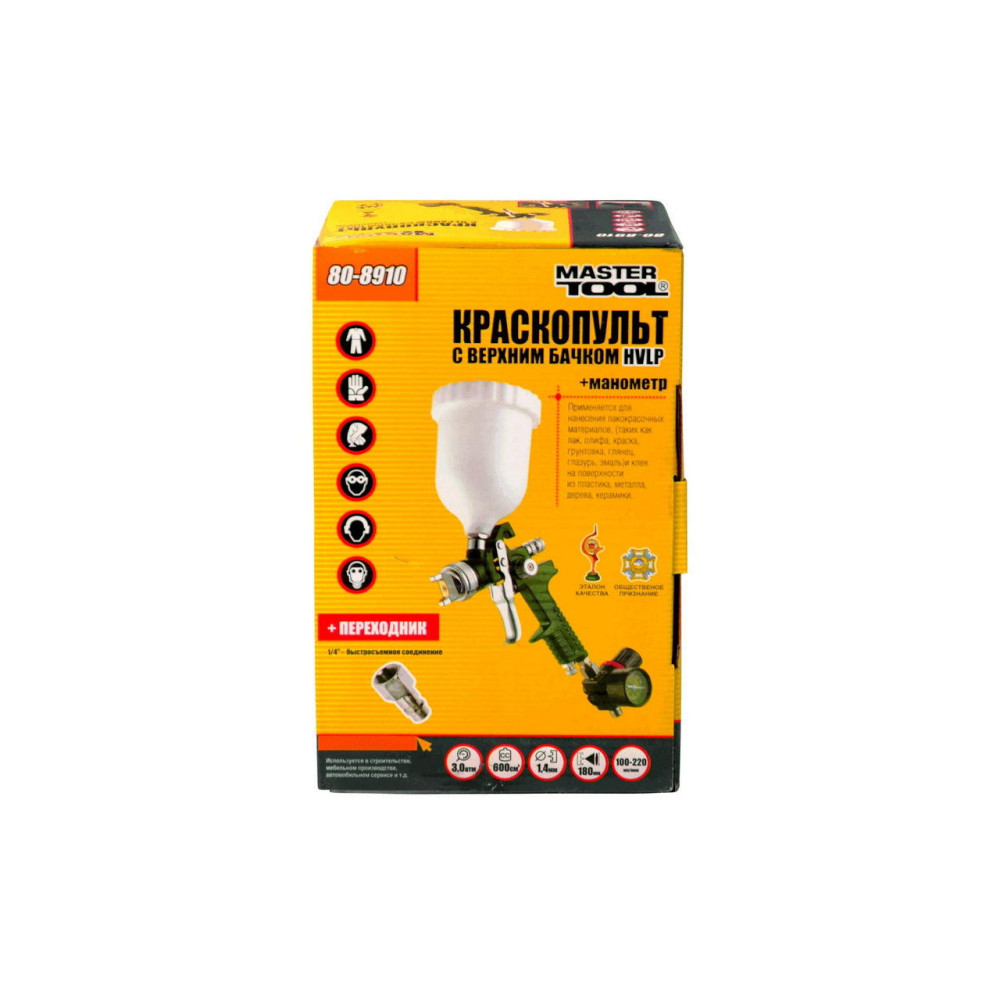 Фарборозпилювач створений за технологією HVLP (High Volume, Low Pressure - великий обсяг, низький тиск 0,7 bar). Застосовується для нанесення лакофарбових матеріалів (лак, оліфа, фарба, грунтовка, глянець, глазур, емаль) і клею на поверхні із пластику, металу, дерева, кераміки. Використовується в будівництві, меблевій промисловості, автомобільному сервісі і т. Д. Обсяг бачка 600 мл. Діаметр сопла 1,5 мм. Робочий тиск 2 - 3.5 атм Ширина факела 160 - 240 мм.