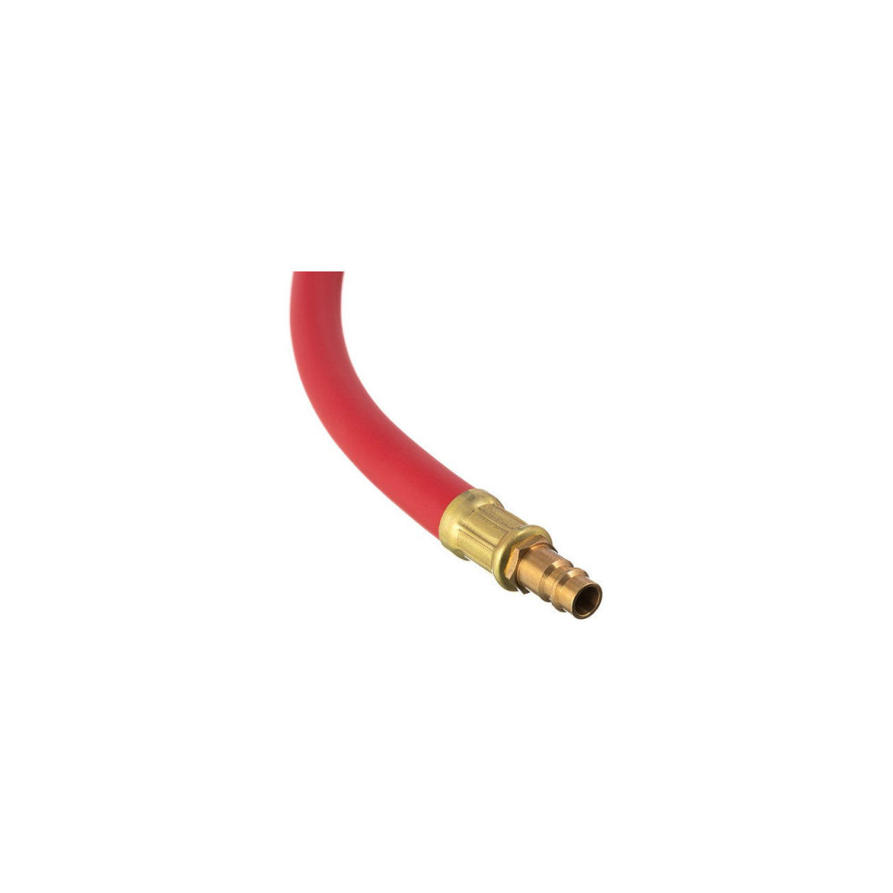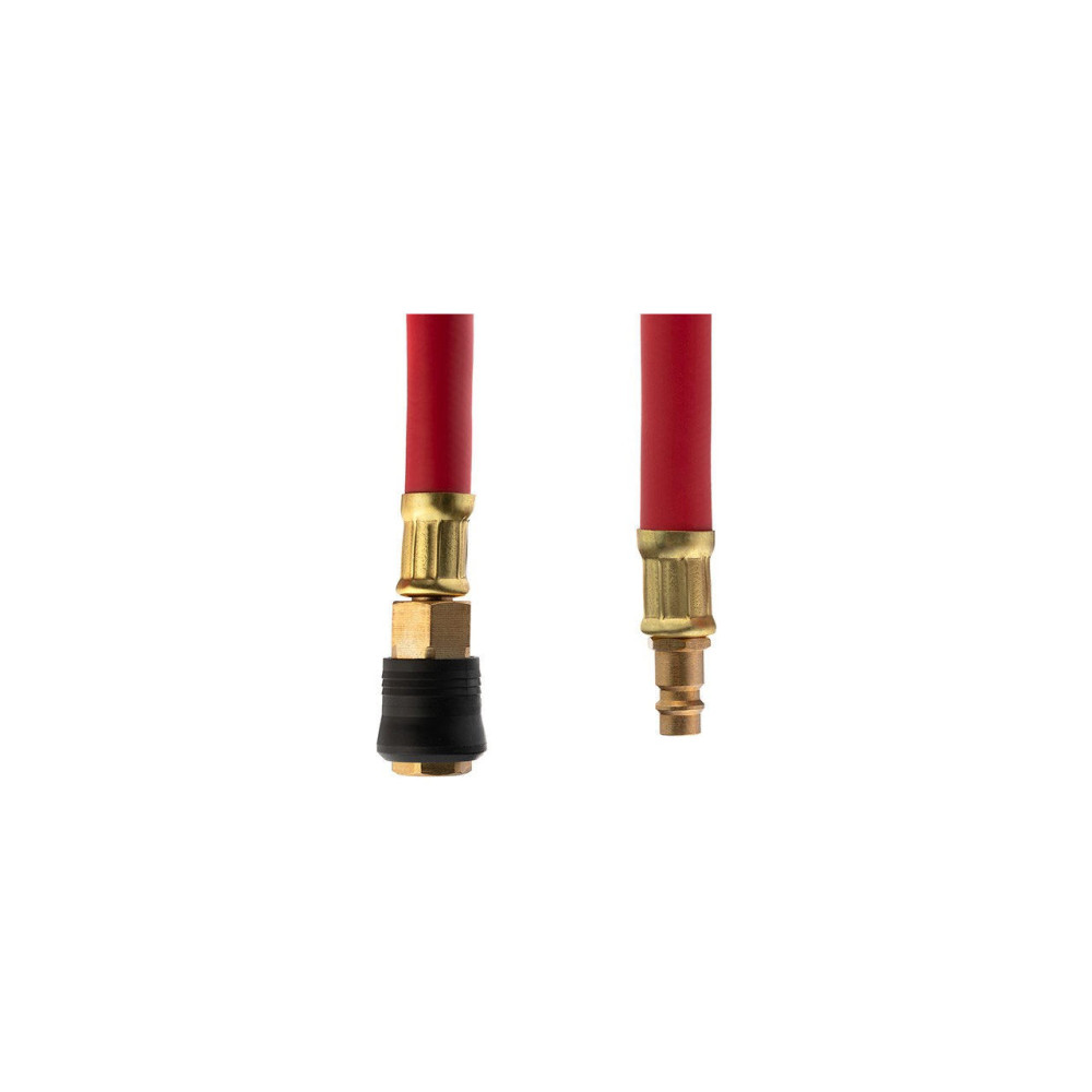 Шланг виготовлений з армованого гібридного складу і зібрав в собі кращі властивості гуми і полівінілхлориду. Спеціальна формула сировини, з якого виготовляються шари шланга, роблять його еластичним, при цьому стійким до низьких і високих температур, зносостійким, маслостойкостью. Гібридні шланги стійкі до зламів і механічних пошкоджень. Міцне армування і товсті стінки шланга забезпечує роботу шланга з тиском повітря до 20 атм. Всі шланги оснащені латунними швидкороз'ємними сполуками, які мають ряд переваг перед сталевими, такі як довговічність, стійкість до корозії, більший термін експлуатації і т.д. Переваги: ​​Тришаровий еластичний, зносостійкий. Стійкий до впливу масел і вологи. Тиск до 20 атм. Температура експлуатації від -20 ° С до + 60 ° С. Латунні швидкороз'ємні з'єднання. Модель PT-1 761 PT-1 762 PT-тисячу сімсот шістьдесят три PT-тисяча сімсот сімдесят один PT-1 772 PT-1773 PT-один тисячу сімсот вісімдесят один PT-1782 PT-тисячі сімсот вісімдесят-три Довжина, м 10 20 30 10 20 30 10 20 30 Діаметр, мм 6 * 11 6 * 11 6 * 11 8 * 15 8 * 15 8 * 15 10 * 17 10 * 17 10 * 17 сполуки швидко (латунь) + + + + + + + + + Довжина шланга: 10 м; Діаметр шланга: 10 * 17 мм; Робочий тиск: до 20 бар; Температура зовнішнього середовища: від -20 до +60 ° С